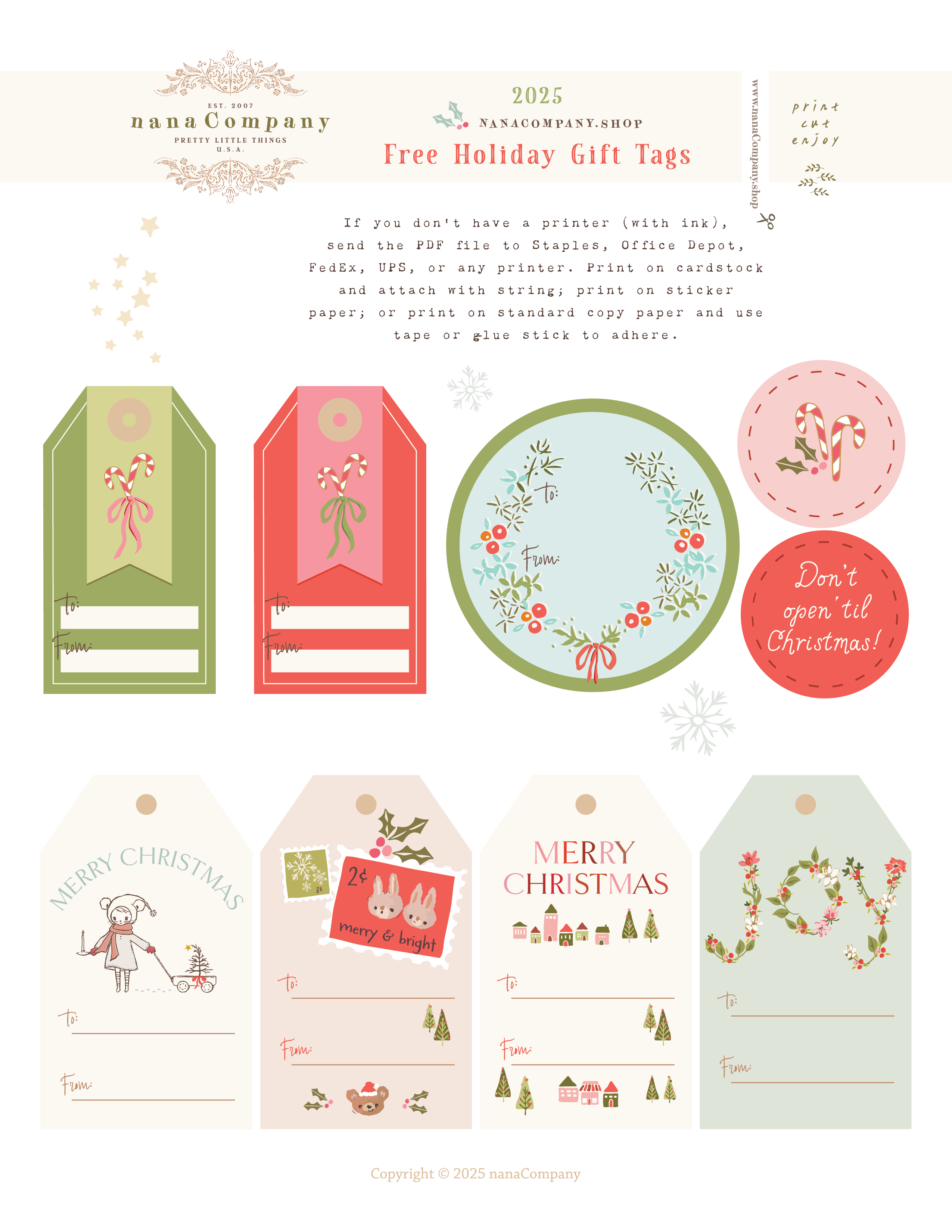 2025 Gift TagsIt's that time of year again! Enjoy our new free gift tags/labels for the 2025 holiday Christmas season.