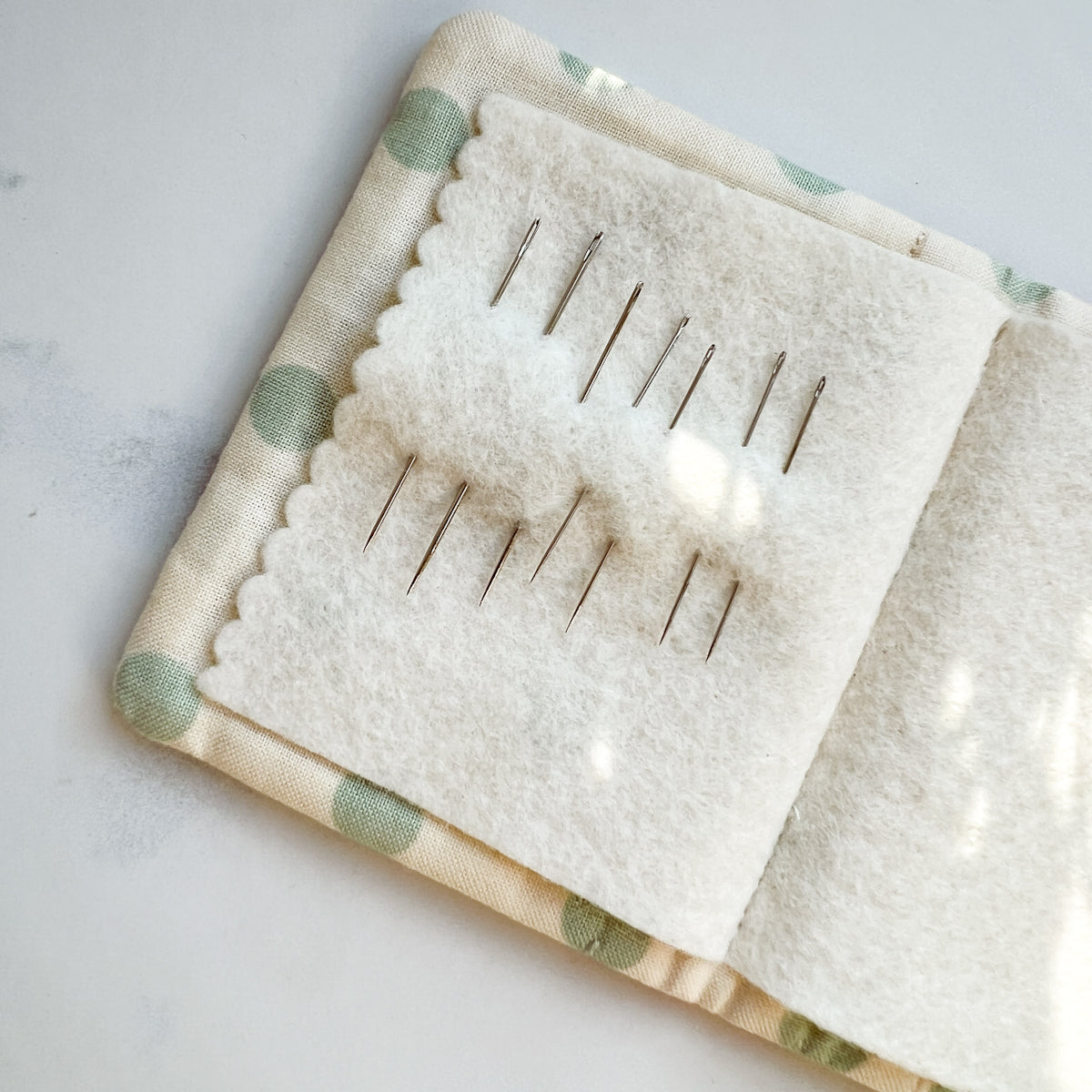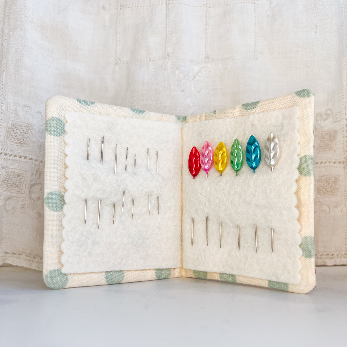 Includes: 1 needle book, leaf pins and needles (as shown)