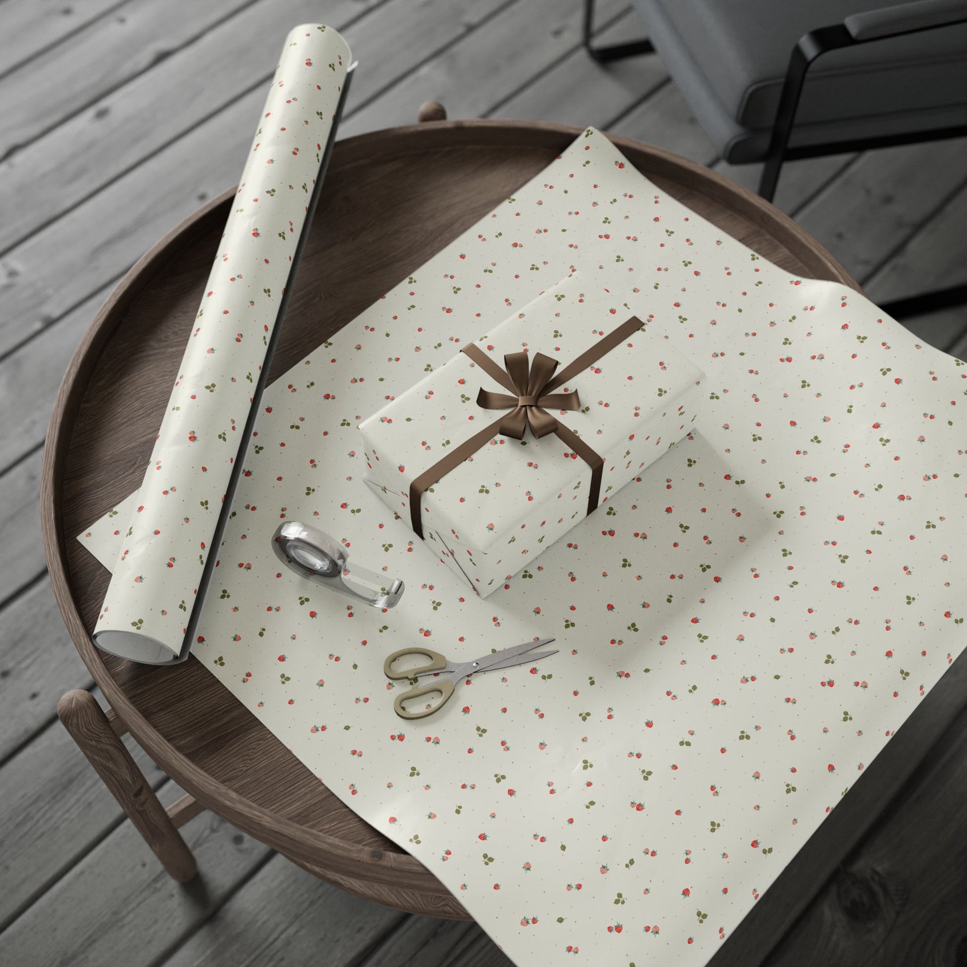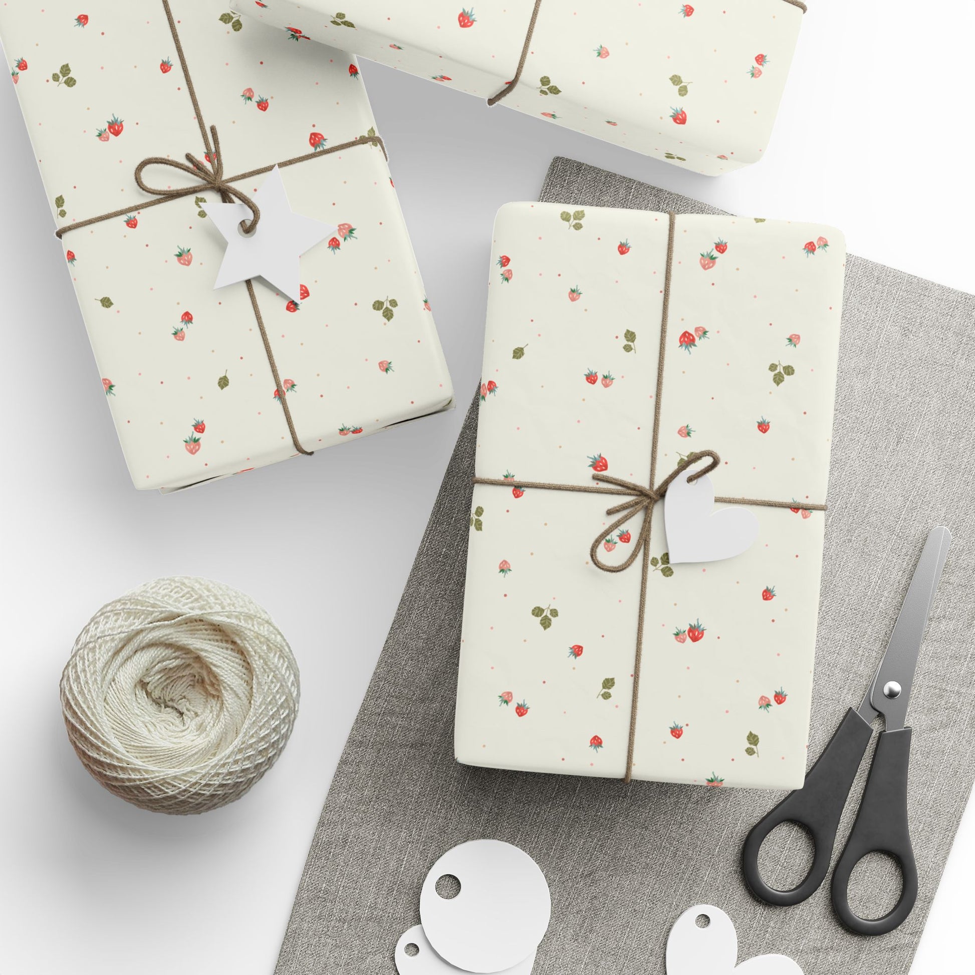 Strawberries! Lovely strawberries that are always in season... this cute wrapping paper shows your good taste before the gift is even opened. Available in two paper finishes (satin, matte)- both are good choices- it's up to you! Each sheet is printed using GreenGuard UL Certified inks and the blank paper is made in the USA under strict quality control.