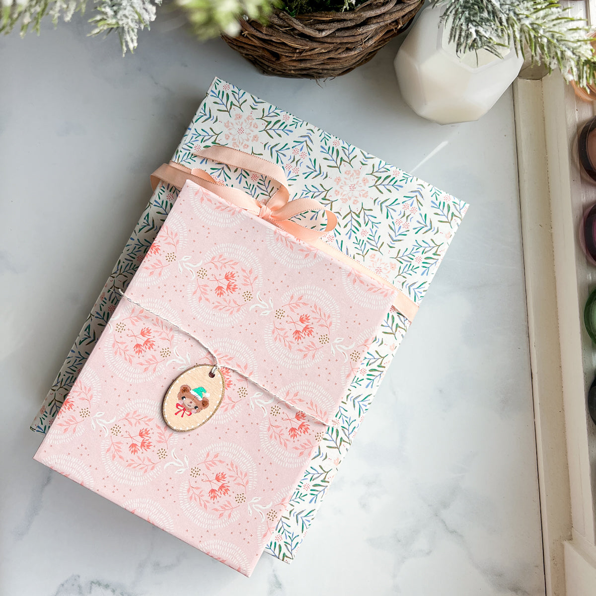 Lovingly hand painted by Amy Sinibaldi, this special one of a kind wood tag could be used as an embellishment or gift tag, featuring a cute Christmas bear and a gold painted edge… The tag comes with a piece of twine and evokes that special “vintage” look.